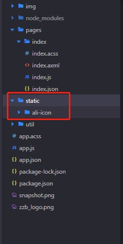5.将iconfont.ttf和改完名的stylesheet.acss拷贝到小程序项目内的static/ali-icon文件夹下;