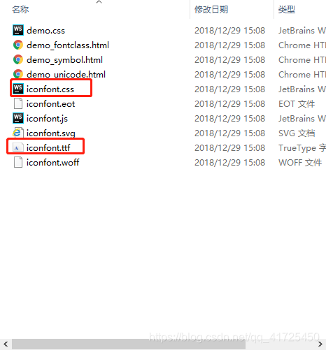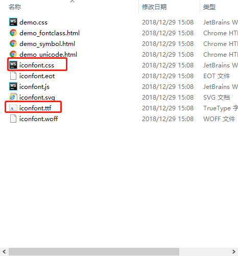 3.将下载下来的字体压缩文件解压,解压后的文件内容如下