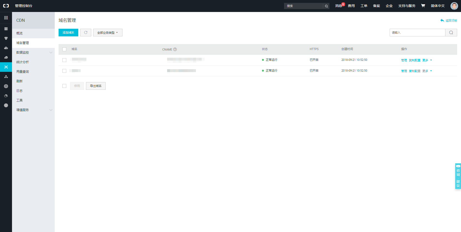证书申请成功后,就要配置CDN,我购买的套餐内包含的有CDN服务,因此,我就不需要在单独购买CDN服务,
