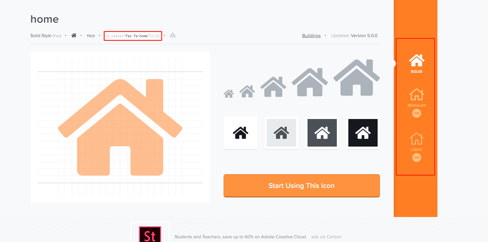 注:solid、regular和brands为Font Awesome免费版支持三种样式;后面使用图标时,也是在免费库内选择;