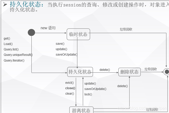 当与某持久对象关联的session被关闭后,该持久对象转变为脱管对象。当脱管对象被重新关联到session上时,并再次转变成持久对象。