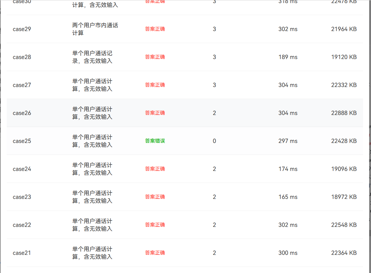 1 } 2 /* 3 * 市内 4 * */ 5 class LandPhoneInCityRule extends CallChargeRule { 6 7 @Override 8 public double calCost(UserRecords userRecords) { 9 double sumCost = 0; 10 for (CallRecord call : userRecords.getCallingInCityRecords()) { 11 double distanceS = (call.getEndTime().getTime() - call.getStartTime().getTime()) / 1000; 12 if (distanceS < 0) { 13 continue; 14 } 15 double distanceM = (int) distanceS / 60; 16 if (distanceS % 60 != 0) { 17 distanceM += 1; 18 } 19 if (call.getCallType().equals("11")) { 20 sumCost += distanceM * 0.1; 21 } else if (call.getCallType().equals("12")) { 22 sumCost += distanceM * 0.3; 23 } else if (call.getCallType().equals("13")) { 24 sumCost += distanceM * 0.6; 25 } 26 } 27 return sumCost; 28 } 29 30 } 31 /* 32 * 国内 33 * */ 34 class LandPhoneInlandRule extends CallChargeRule { 35 36 @Override 37 public double calCost(UserRecords userRecords) { 38 double sumCost = 0; 39 for (CallRecord call : userRecords.getCallingInLandRecords()) { 40 double distanceS = (call.getEndTime().getTime() - call.getStartTime().getTime()) / 1000; 41 if (distanceS < 0) { 42 continue; 43 } 44 double distanceM = (int) distanceS / 60; 45 if (distanceS % 60 != 0) { 46 distanceM += 1; 47 } 48 sumCost += distanceM * 0.6; 49 } 50 return sumCost; 51 } 52 53 } 54 /* 55 * 省内 56 */ 57 class LandPhoneInProvinceRule extends CallChargeRule { 58 59 @Override 60 public double calCost(UserRecords userRecords) { 61 double sumCost = 0; 62 for (CallRecord call : userRecords.getCallingInProvinceRecords()) { 63 double distanceS = (call.getEndTime().getTime() - call.getStartTime().getTime()) / 1000; 64 if (distanceS < 0) { 65 continue; 66 } 67 double distanceM = (int) distanceS / 60; 68 if (distanceS % 60 != 0) { 69 distanceM += 1; 70 } 71 sumCost += distanceM * 0.3; 72 } 73 return sumCost; 74 } 75 76 }