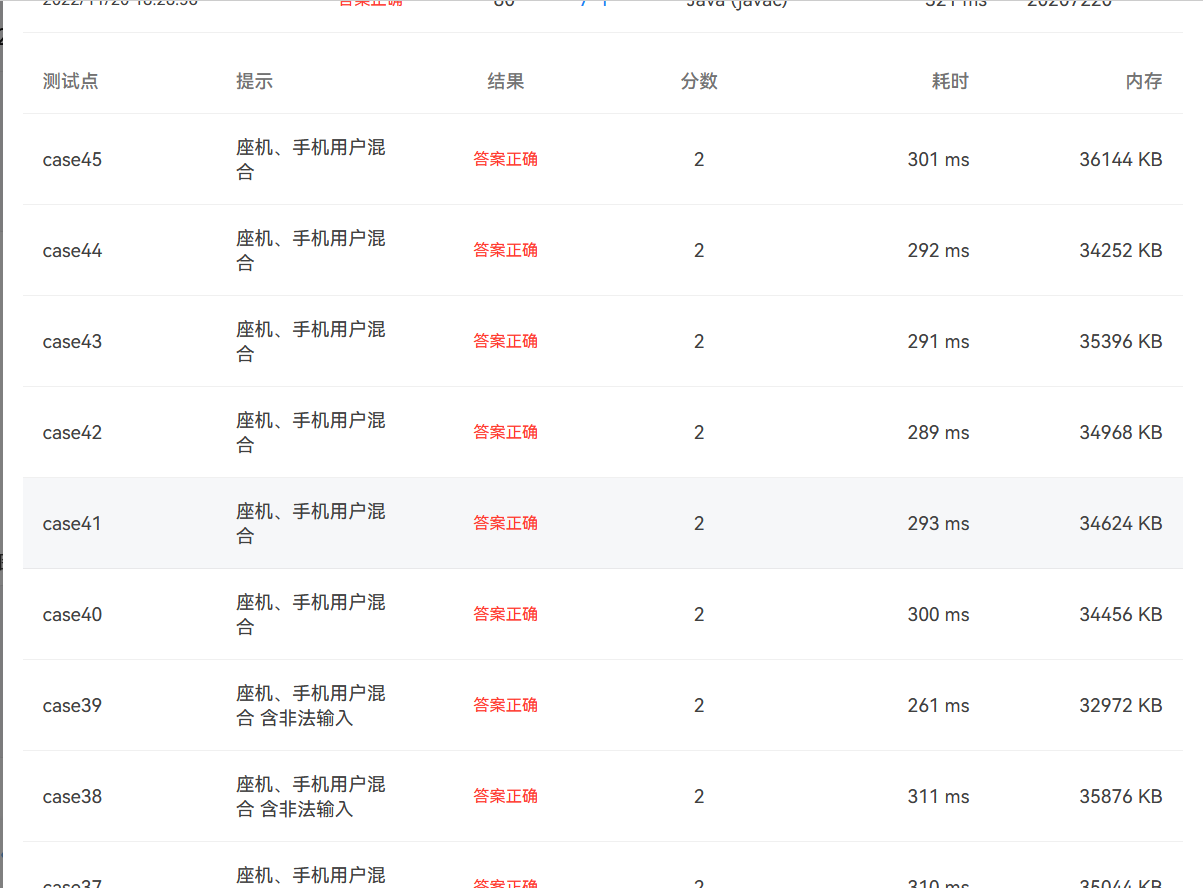 分析:这次难度就降低了,只需要照着之前的框架写就行,不过最后700多行的代码它还显示太长了,我就把之前的座机,手机电话付费的删掉了,测试点也都能过。