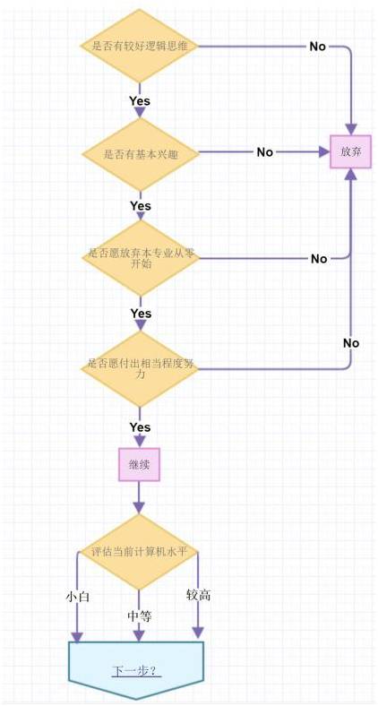 逻辑思维,没问题。什么叫最基本的兴趣?我觉得就是不会讨厌写代码,整天坐在电脑前面工作。嗯也算有。鲁迅说过:“哪里有什么天才,我只不过是把别人喝咖啡的时间用在了工作上”。嗯,努力一下也可以挥土如金了。我在对自己做了综合的分析之后,我毅然决然的选择了计算机专业。。