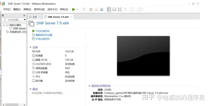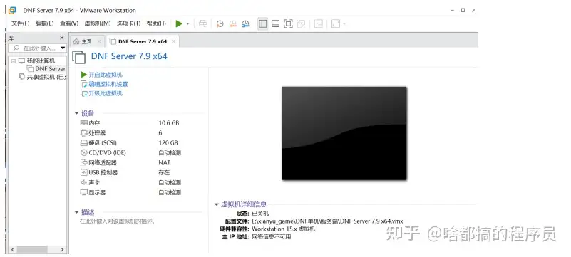 2. 左上角 文件 打开 选择: 服务端-> DNF Server 7.9 x64.vmx