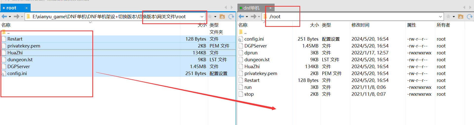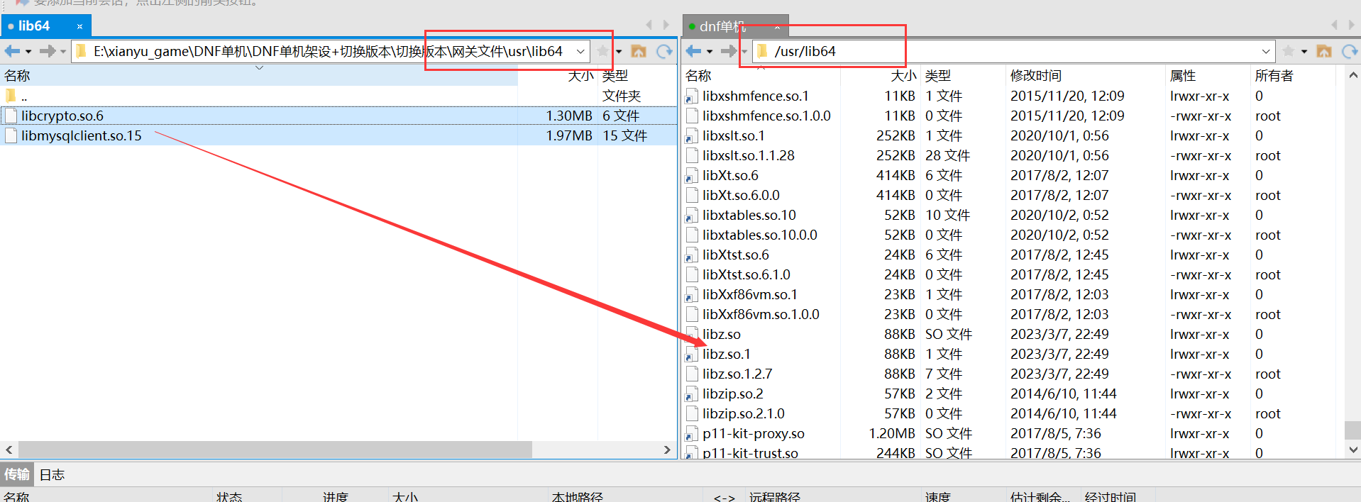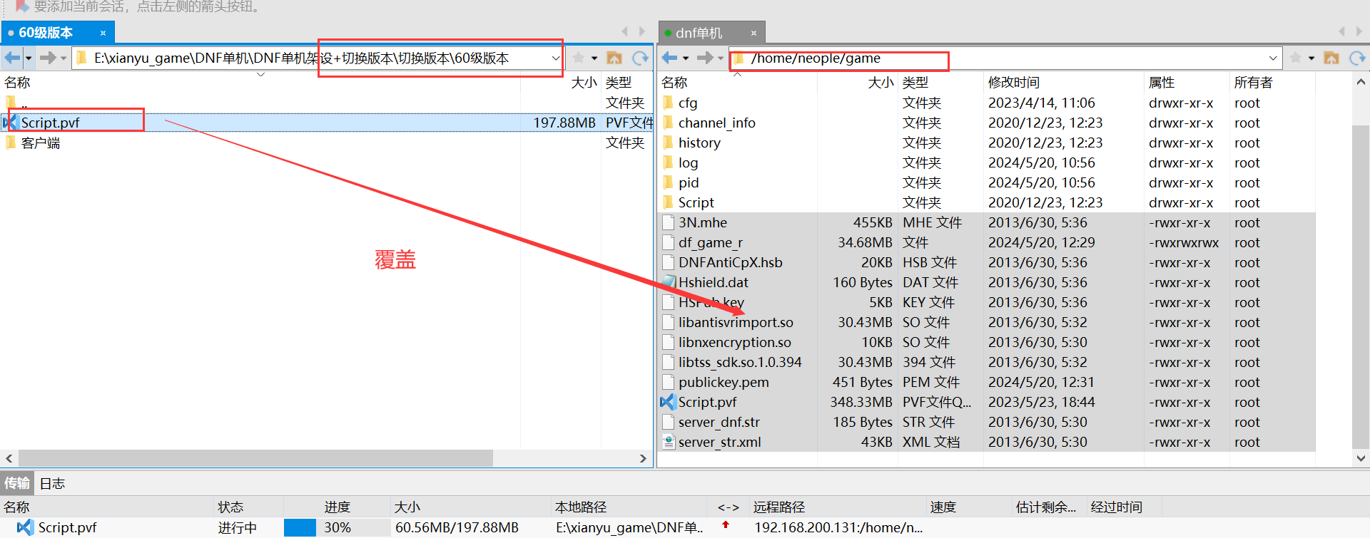 然后上传等级补丁文件到/home/neople/game/ (这里要注意对应版本等级,60级版本就找_60的文件)