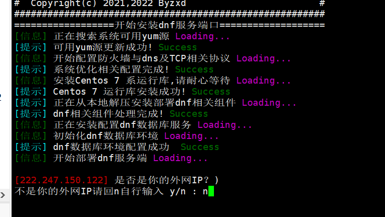 等一会提示ip ,显示的是你电脑网络的出口ip,显然不是本机的,我们输入 n