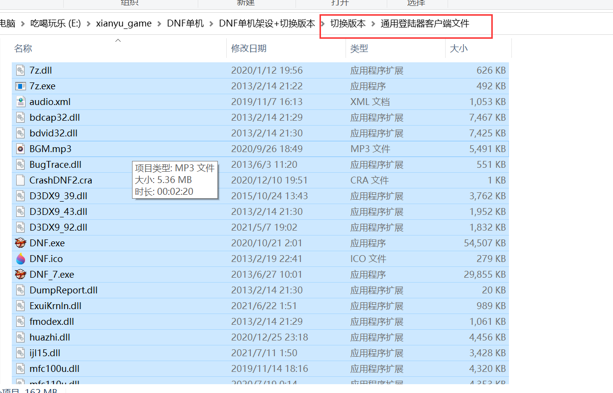 找到 通用登陆器客户端文件 文件夹,然后ctrl+a全选,ctrl+c复制所有文件