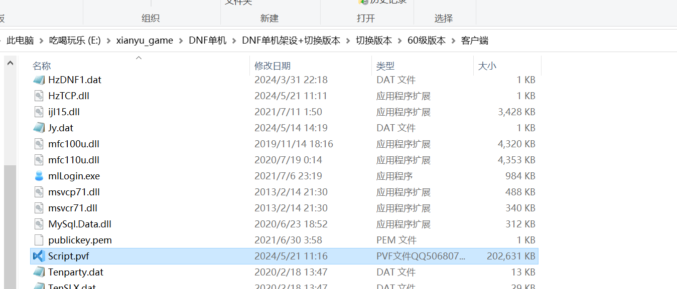 选择到原始未加密的pvf文件(之前我们上传到服务器里面了的)