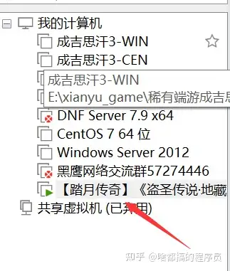 选择左边的踏月传奇,点击开启此虚拟机,这里一定要选择【我已移动该虚拟机】如果选择错误的话就把服务端删除了重新解压。