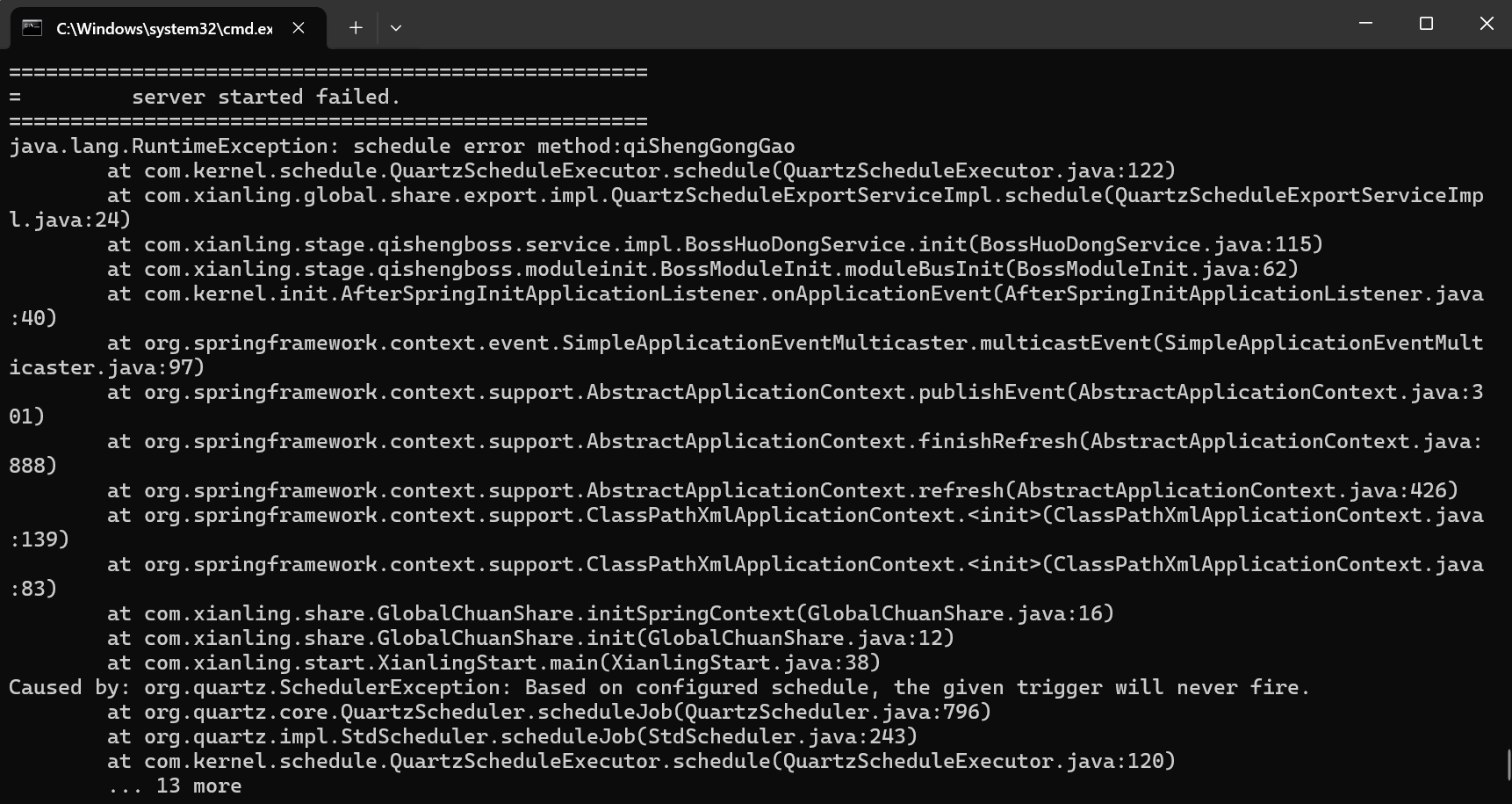 启动后等待几分钟, 如果提示启动失败 “server started failed”