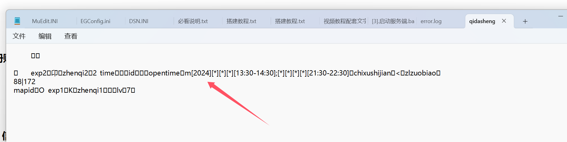 则是游戏时间配置问题, 记事本编辑打开 D:\server\config\game\sys_config\qidashengmappeizhi.jat 文件, 将 2024改成你当前的时间年,