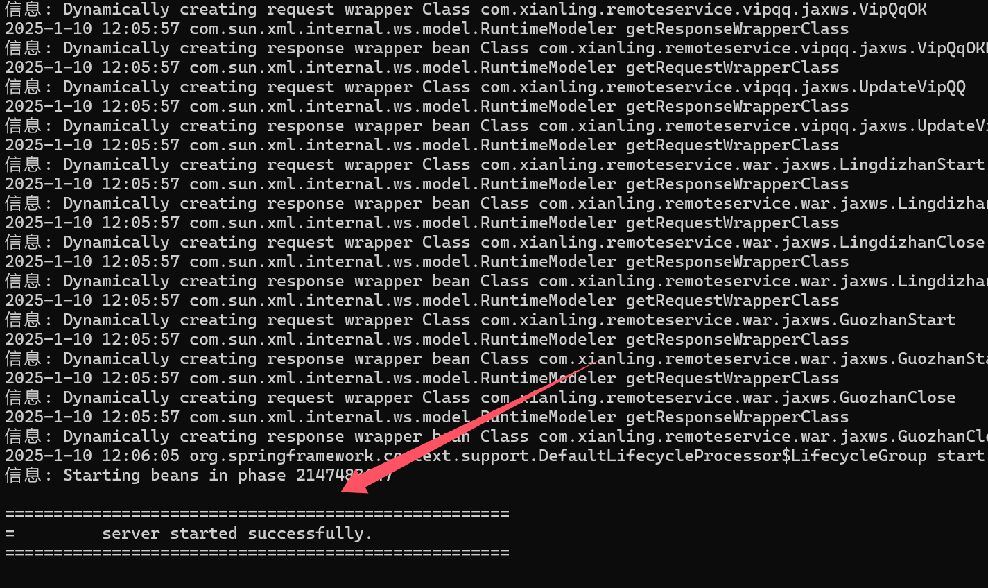 如果 没有提示 错误, 则无需修改, 等待出现 “server started successfully” 代表启动成功, 这个黑框不能关闭。
