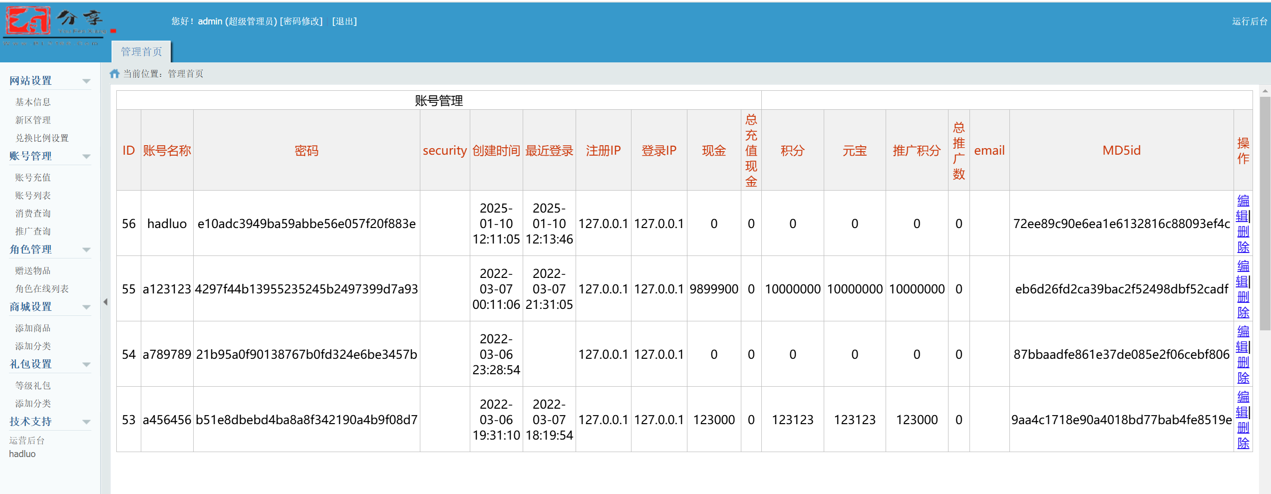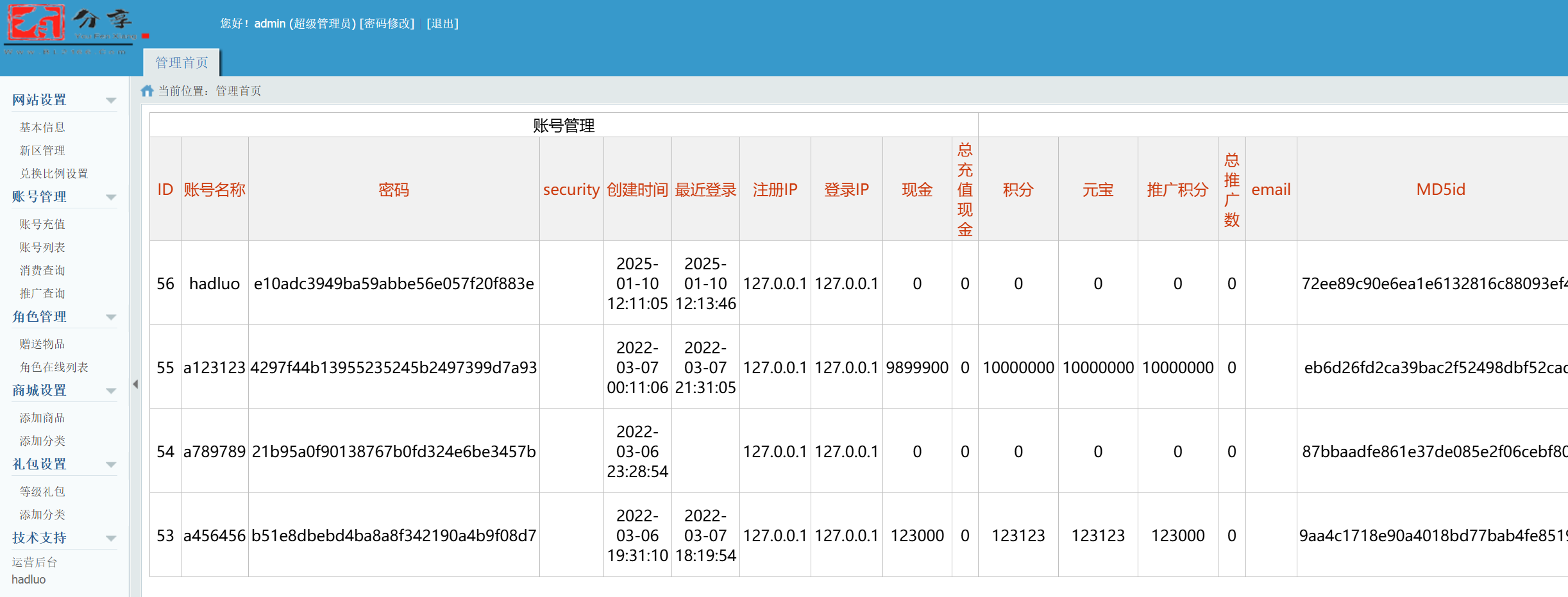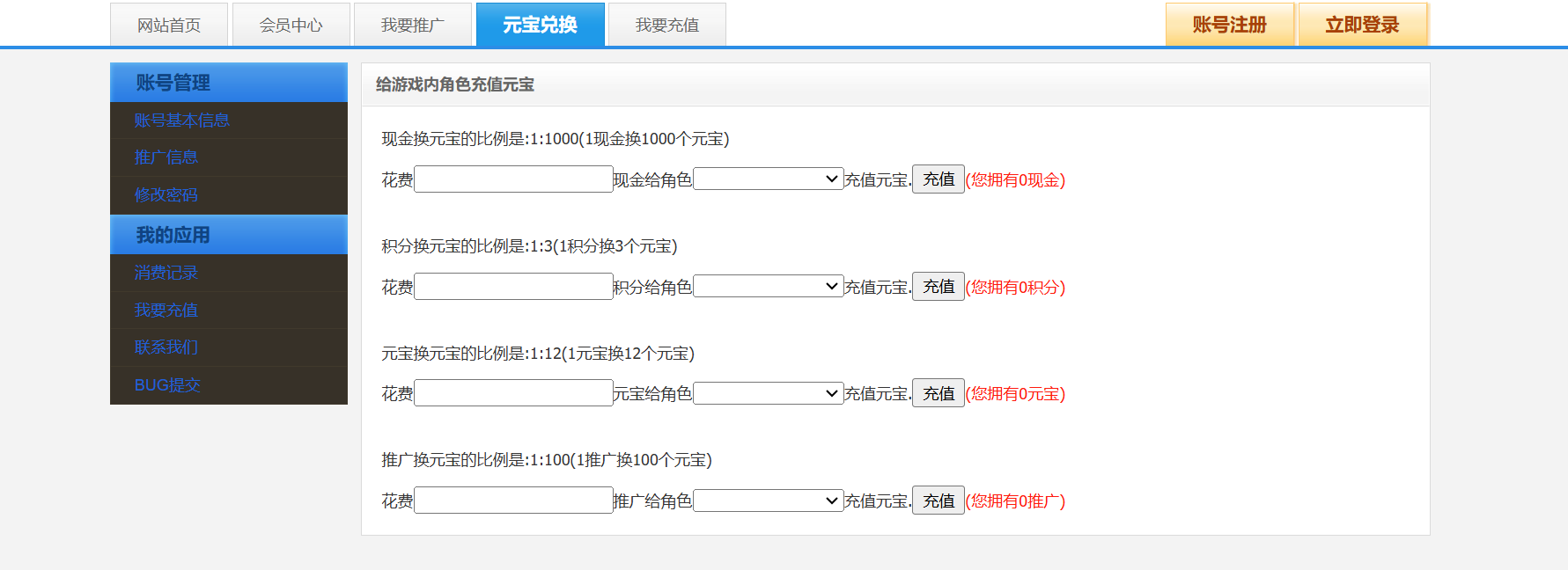 点击 账号充值 输入你要充值的账号和数量 提交充值就可以了 充值成功后,http://127.0.0.1/duihuan.php这里可以充值