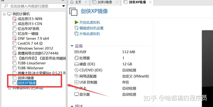 然后在虚拟机里面左上角文件,分别打开 剑侠U镜像 和 剑侠XP镜像 的vmx文件: