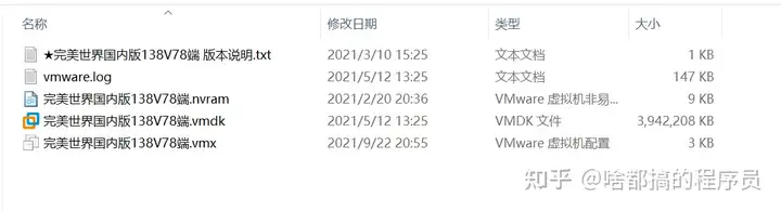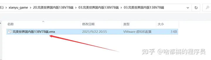 我们先解压 03.完美世界国内版138V78端.7z ,这个是虚拟机镜像文件。