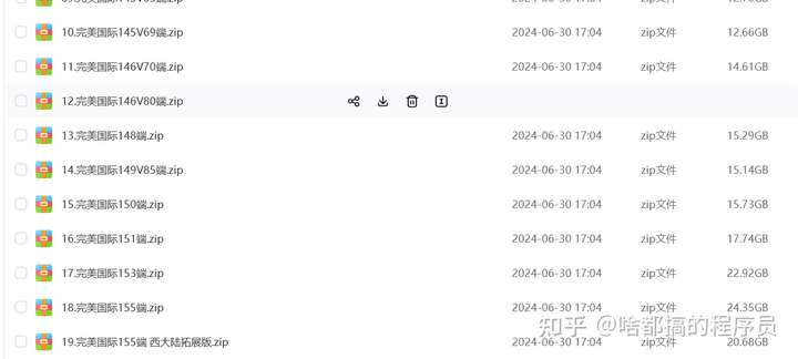 先看所有的版本的文件,文件比较大,准备好空间,差不多每个版本都有20G左右。