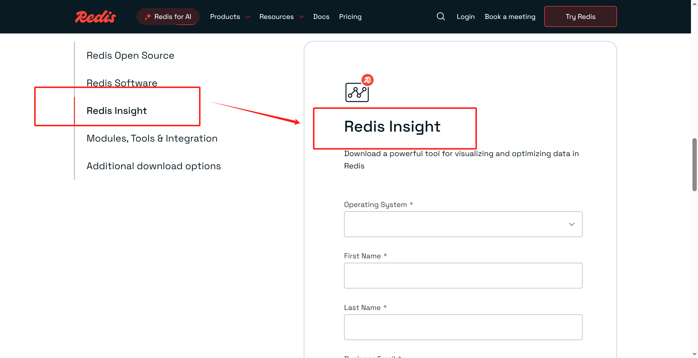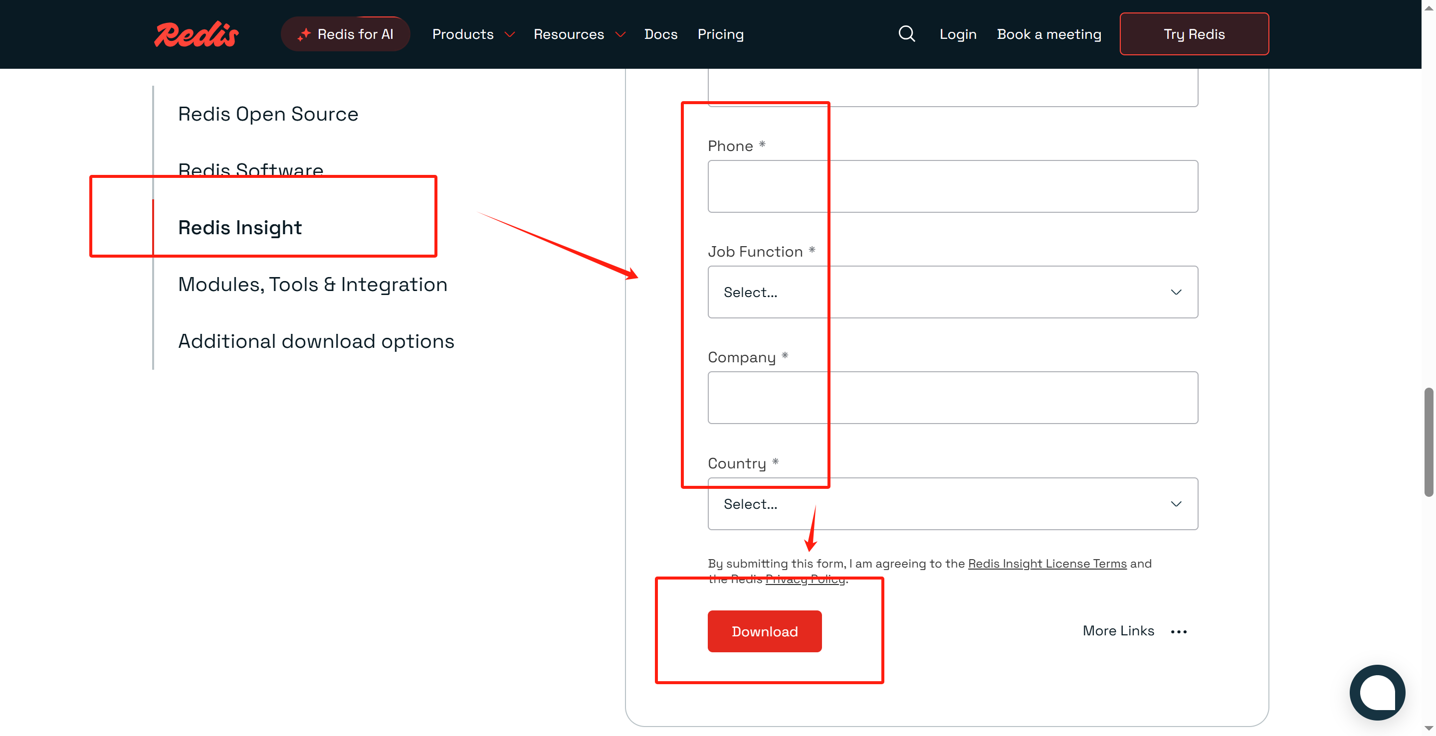 1.找到Redis Insight板块,填写一些信息,点击下载按钮