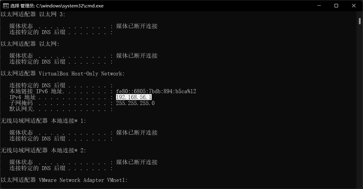 这里的 ip 需要在本地cmd下使用 ipconfig 命令找到