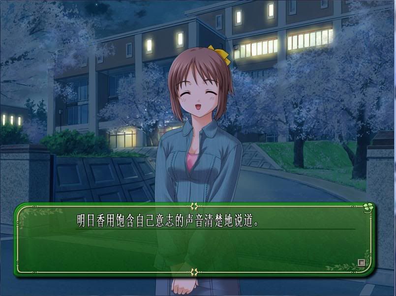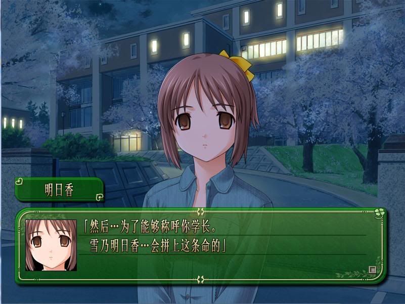 明日香凭着努力凭着对恋人的爱,考上了理想中的大学。我呢?~努力程度还不够啊。留有遗憾吧,潮流些的语言——怨念啊,哈哈哈~~~