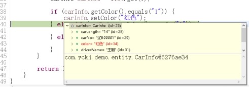 假如前台显示颜色的时候,能处理红黄蓝绿.但是我们的数据列表里,没有黄色车辆的信息,需要临时伪造出一个黄色车辆信息,传递给前台看看显示效果。我们可以在不修改代码的情况下,通过调试来完成这个任务。