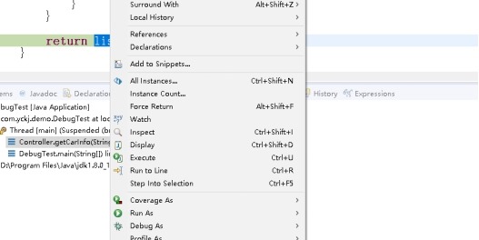 将断点设置在获取完车辆列表之后的任意位置,进入断点后,