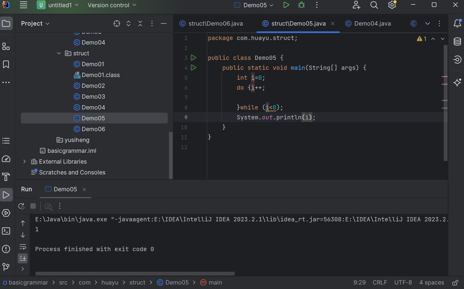 如果是while,由于i不小于0故不会被执行,但在dowhile下,i先进行加一再判断是否小于零,故最后i结果为1