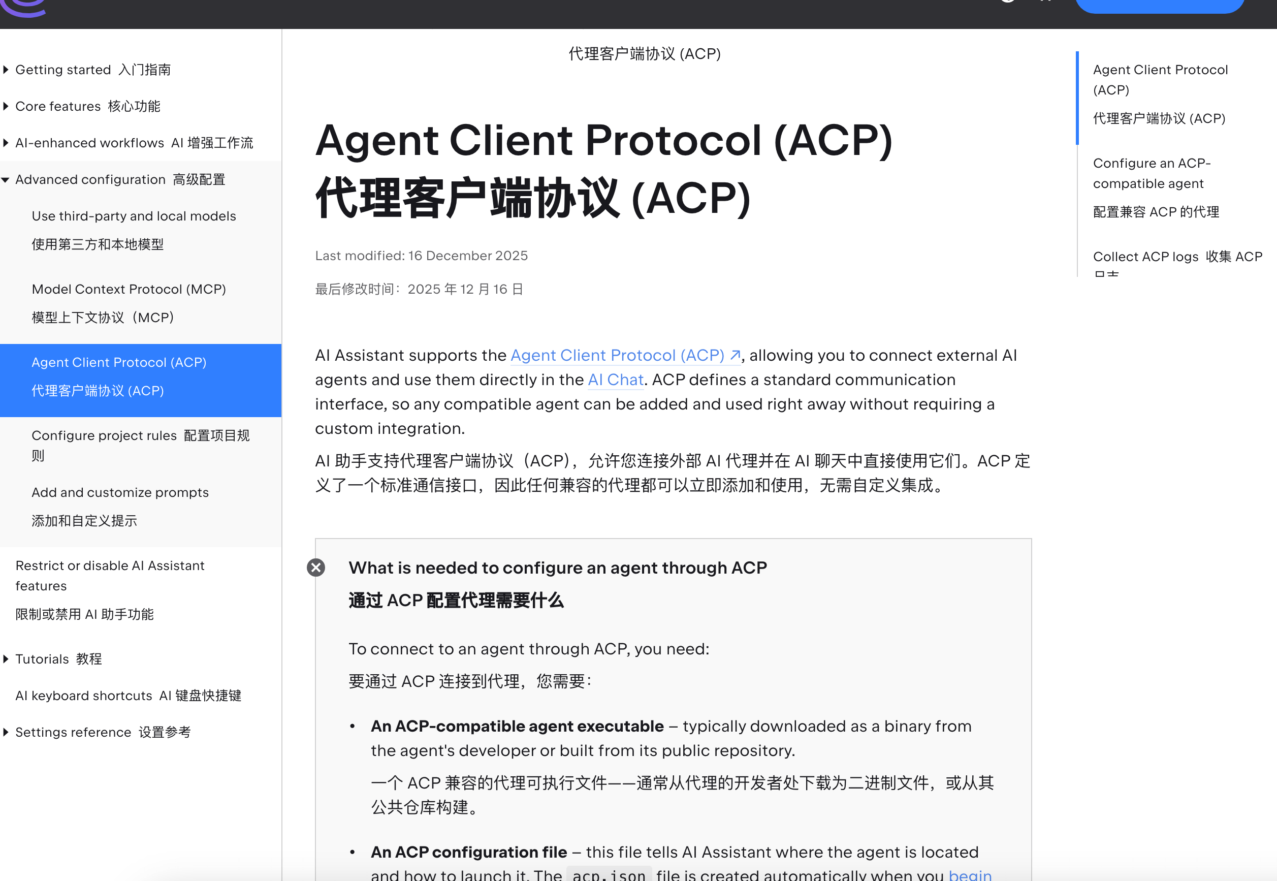 关于 ACP 更详细的介绍,可以查看官方文档:https://agentclientprotocol.com/overview/introduction 。