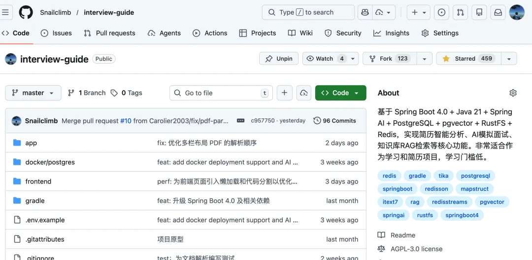- Github:https://github.com/Snailclimb/interview-guide