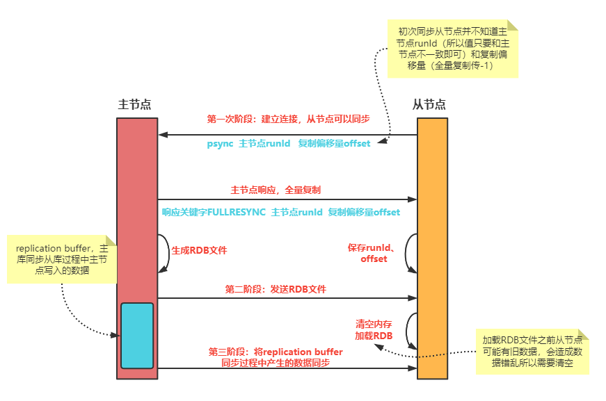 当主从节点开始进行全量同步时,主节点接收到命令EXPIRE name 10给一个键值设置过期时间,这时主节点会等主从节点全量同步完毕后,才向从节点发送全量同步期间接收到的命令EXPIRE name 10。