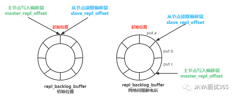 slave_repl_offset 这个数据是由从节点记录,所以有多少个从节点就会有多少个slave_repl_offset值,因为每个从节点的复制进度不会相同,而repl_backlog_buffer是共享的,所有从节点共享这个环形数组。