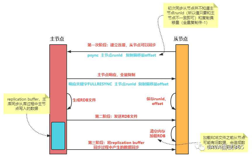 了解完主从连接建立后,就需要知道主从初次建立连接后的具体过程,如下所示。
