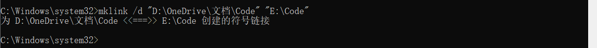mklink /d "D:\OneDrive\文档\Code" "E:\Code"