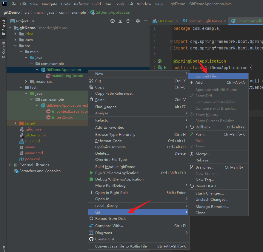 选中文件或文件夹,单击右键,提交后文件将变为白色,白色:已经commit的文件