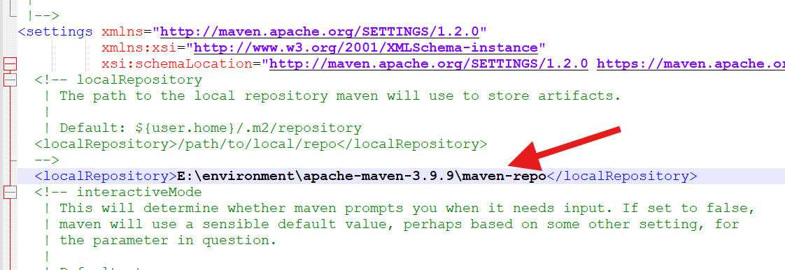<localRepository>E:\environment\apache-maven-3.9.9\maven-repo</localRepository>