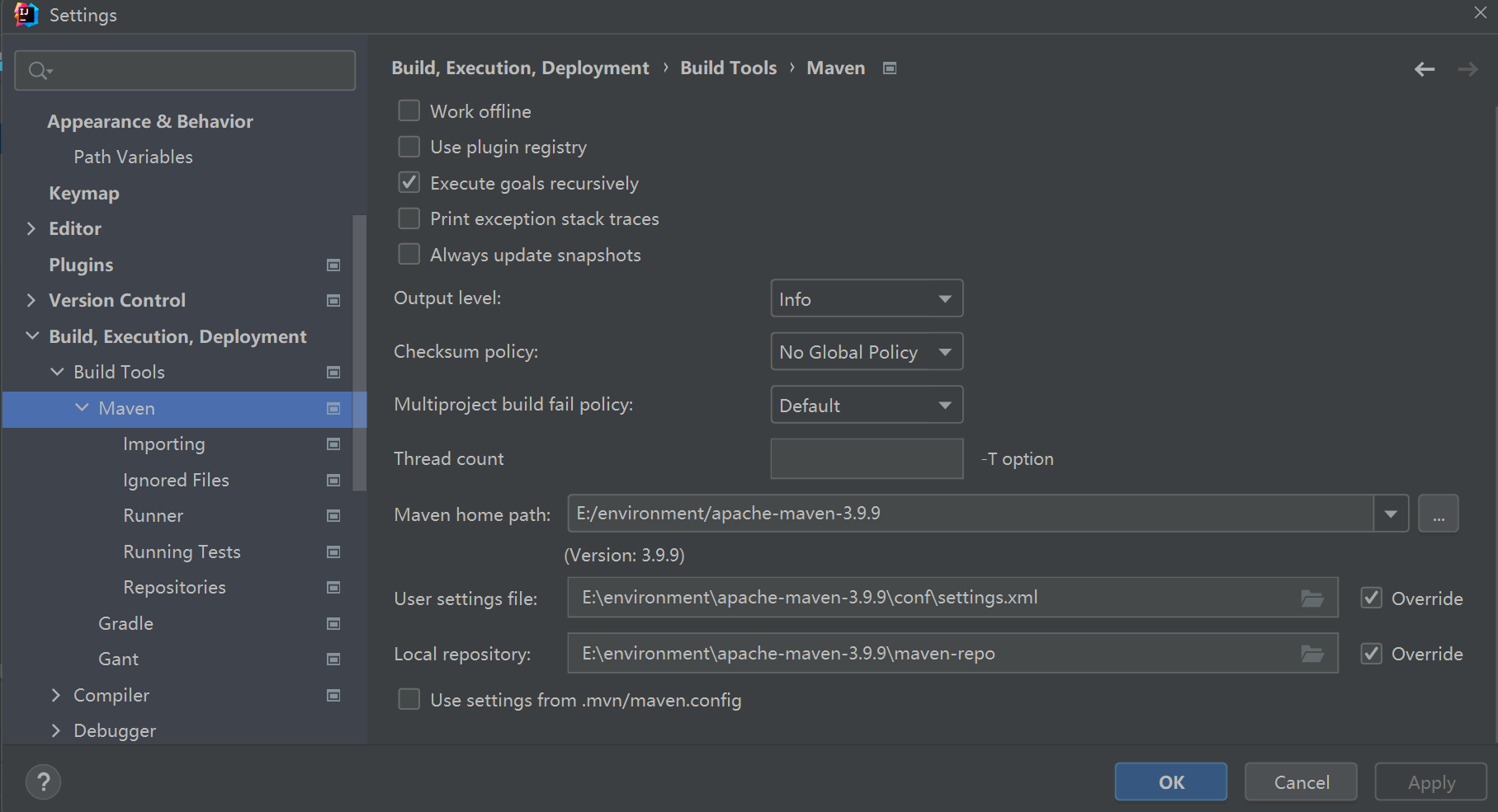 注意:maven项目自动生成后,maven地址,配置文件很有可能是IDEA默认配置,打开看看,需要修改则换成本地的。