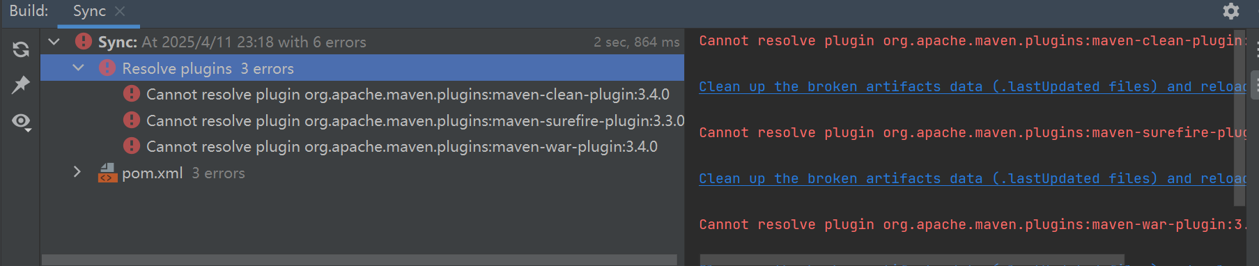 maven项目配置完成后出现错误(maven无法解析几个核心插件)