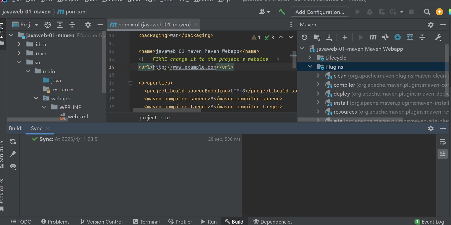 注意:不建议创建项目使用javaweb模板,一般创建一个普通maven项目,手动变成javaweb.