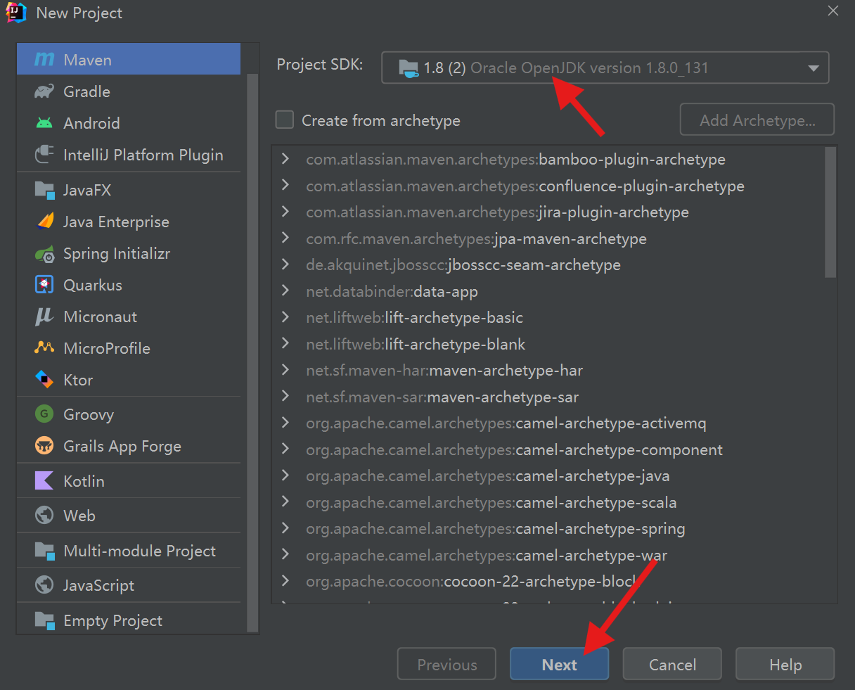 - 不需要勾选maven模板,选择对应版本jdk直接next.