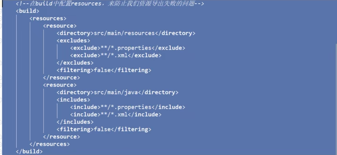 - 一个干净的maven项目:蓝色java(存放源代码),resources(存放配置文件),绿色java(存放测试使用),初始xml配置文件
