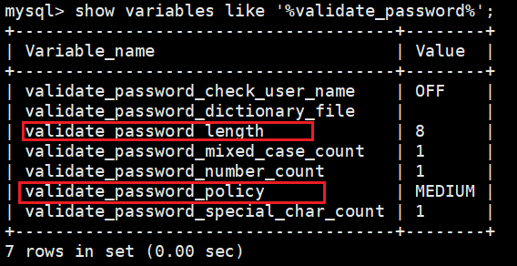 mysql> set global validate_password.policy=0; mysql> set global validate_password.length=1; 或 mysql> set global validate_password_policy=0; mysql> set global validate_password_length=1;