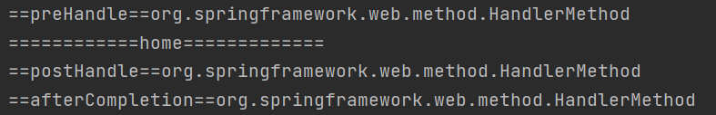 public class LogHandlerInterceptor implements HandlerInterceptor { @Override public boolean preHandle(HttpServletRequest request,HttpServletResponse response, Object handler) throws Exception { System.out.println("==preHandle=="+handler.getClass().getName()); return true; } @Override public void postHandle(HttpServletRequest request,HttpServletResponse response, Object handler,ModelAndView modelAndView) throws Exception { System.out.println("==postHandle=="+handler.getClass().getName()); } @Override public void afterCompletion(HttpServletRequest request,HttpServletResponse response, Object handler, Exception ex)throws Exception { System.out.println("==afterCompletion=="+handler.getClass().getName()); } }