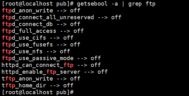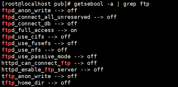 这时需要做如下检查,如果返回如下,都是off。则需要设置ftpd_full_access为on