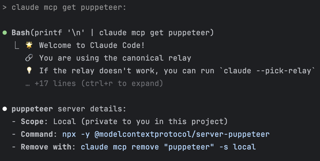 claude mcp add puppeteer npx -- -y @modelcontextprotocol/server-puppeteer