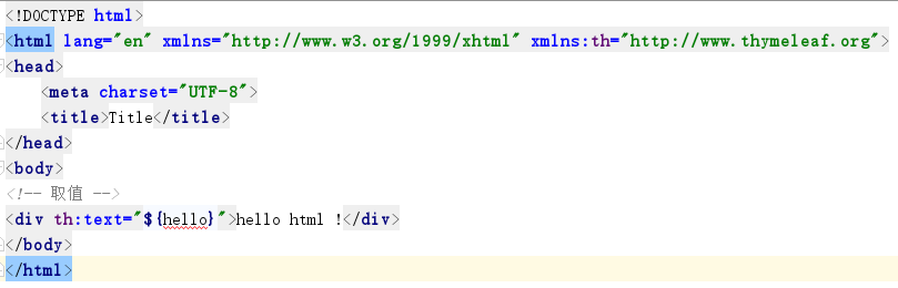 <div th:text="${hello}">hello html !</div>