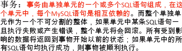 一个或一组sql语句组成一个执行单元,这个执行单元要么全部执行,要么全部不执行