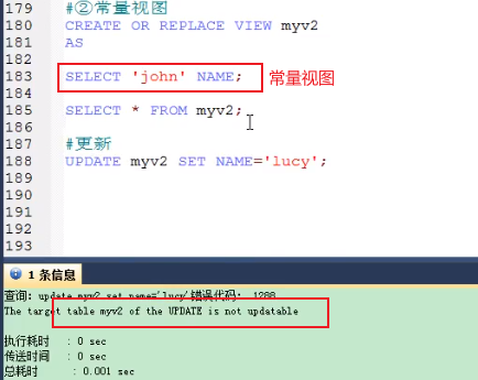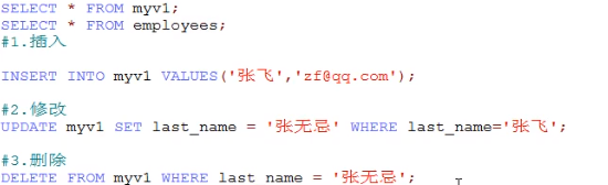 创建完视图以后可以像正常的表一样执行简单的增删改操作