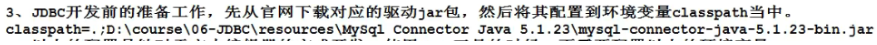 JDBC开发前的准备工作,先从官网下载对应的jar包,然后将其配置到环境变量classpath当中.