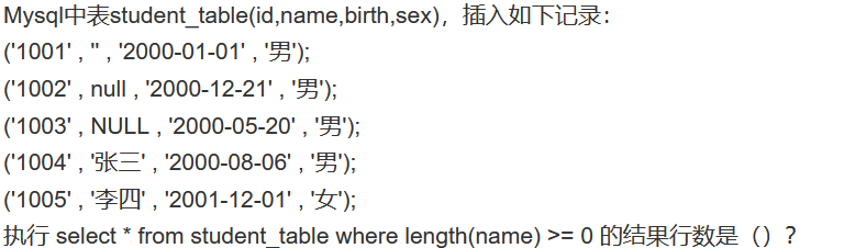 5.Mysql中表student_table(id,name,birth,sex),插入如下记录:
