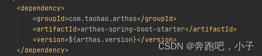 果真让我看到了pom文件有对应arthas字样的依赖,而且版本是3.4.3低于我上述命令安装的最新版本3.6.9.